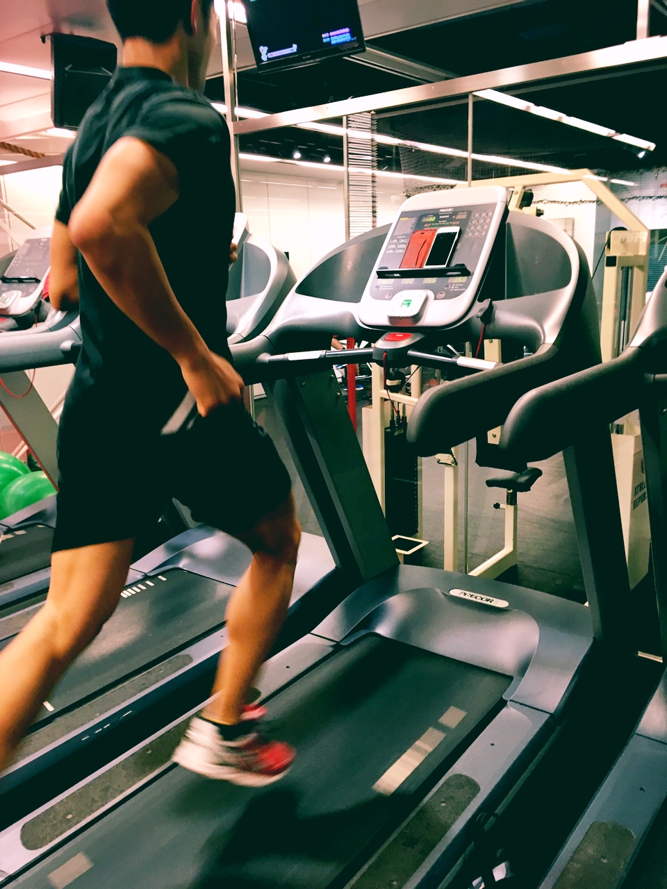 トレーナーがクライアントに15%の坂道走らせておいて自分は0%で走ってる.でもすごい綺麗だ