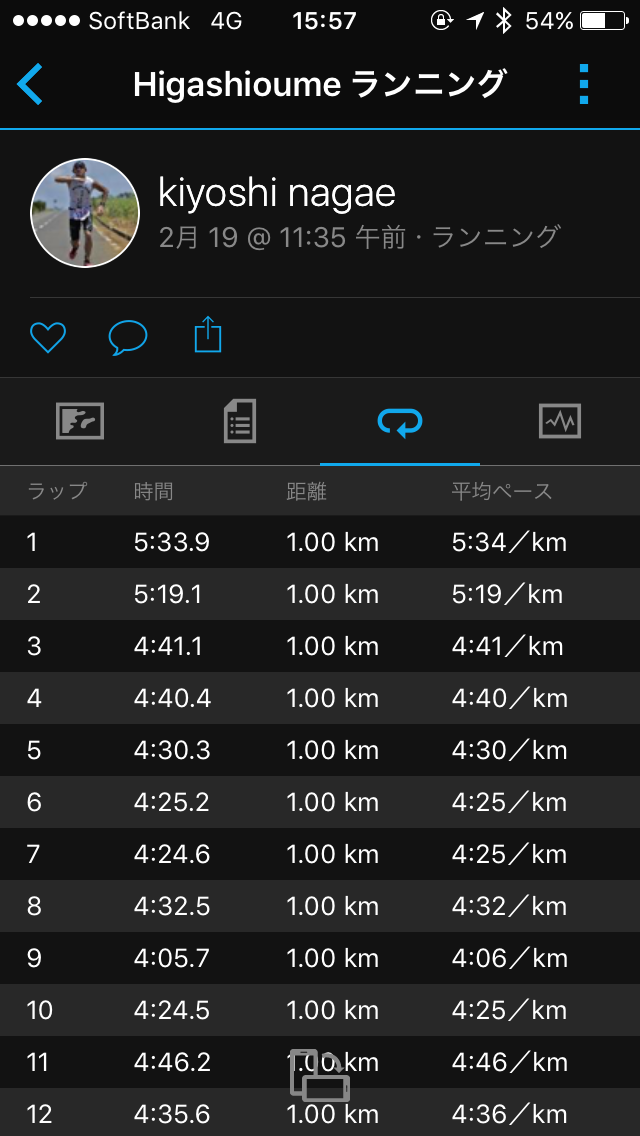 15㎞の時点で感覚ではほぼ疲労なし