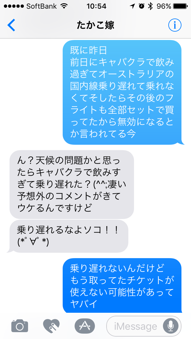 この時はまだ妻とのメールの中で飛行機を乗り過ごした事を伝えると