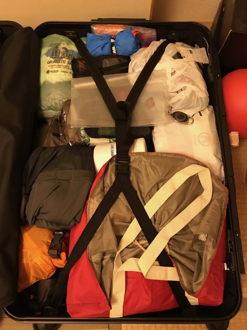 そしてUTMBは防寒具などの必携が厳しいので重さはそうでもないのだが衣類が増量されていつものサロモンの5リットルバッグに入らない…