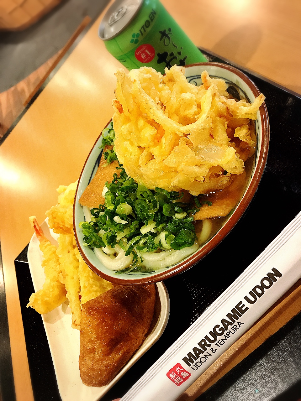 丸亀製麺 天ぷら4個といなりも乗せて 2000円チップ無し